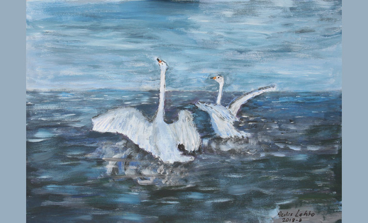 Aulis Lehto, "Joutsenet", acryl 51x36 13/15